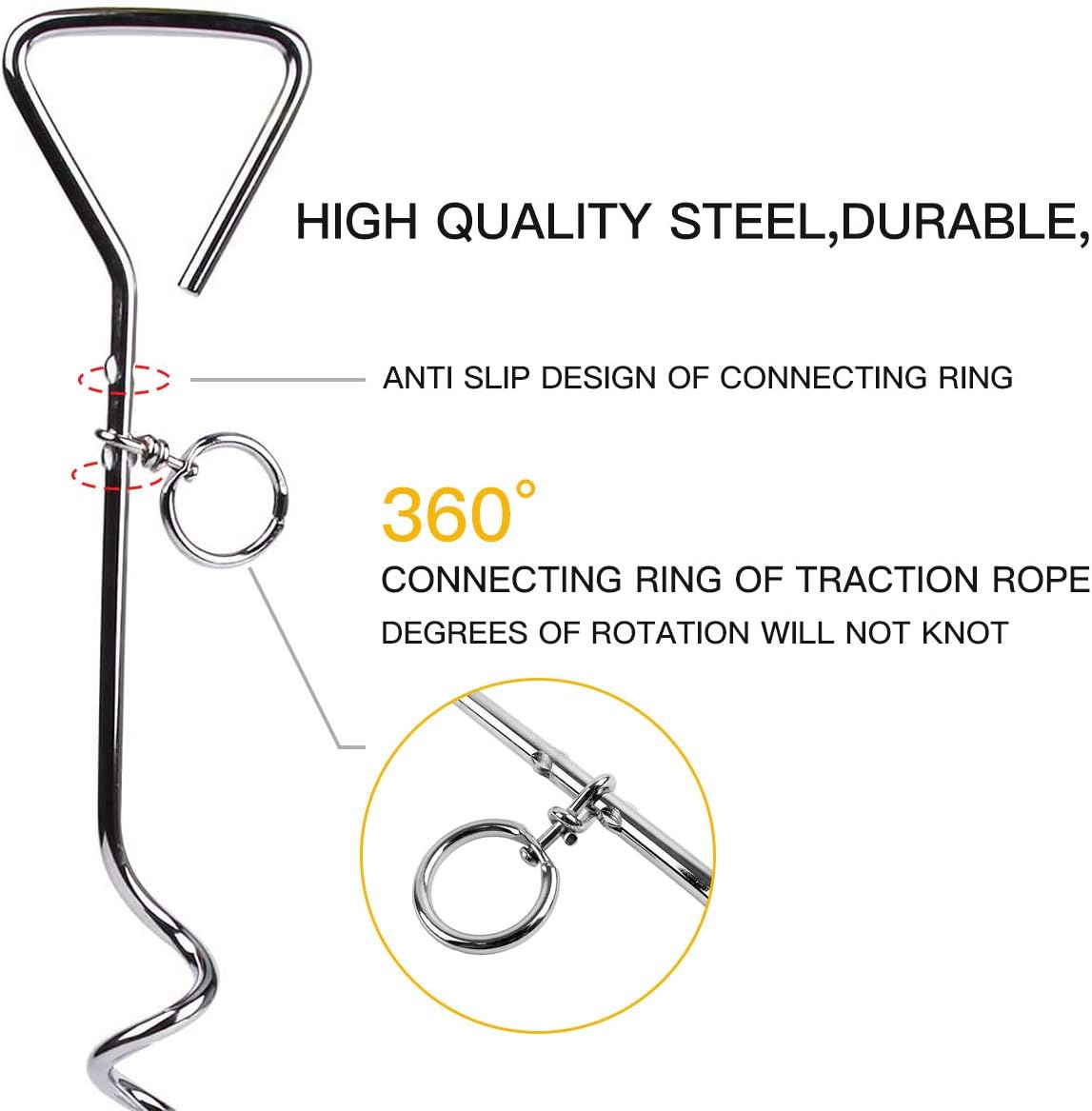 Fácil de usar: incluye una estaca en espiral resistente y un cable de 16/30 pies. Simplemente atornilla la estaca en el suelo y conecta el collar al cable.