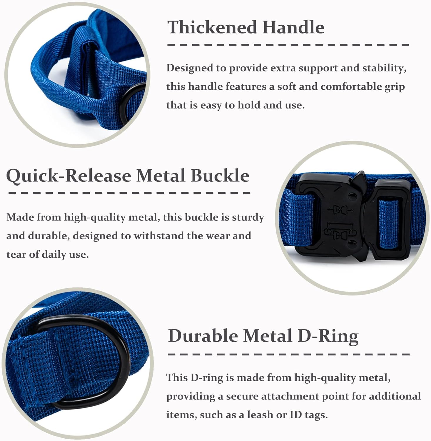 Diseño funcional y elegante: disponible en varios colores y tallas (M, L, XL), con un anillo separado para sujetar la placa de identificación o la correa.