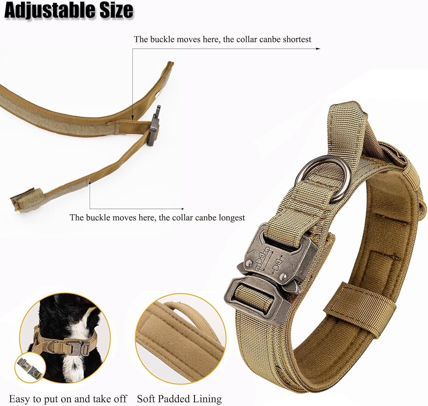 El collar táctico perfecto para perros activos, fuerte, seguro y cómodo — preparado para cualquier aventura al aire libre o sesión de entrenamiento.