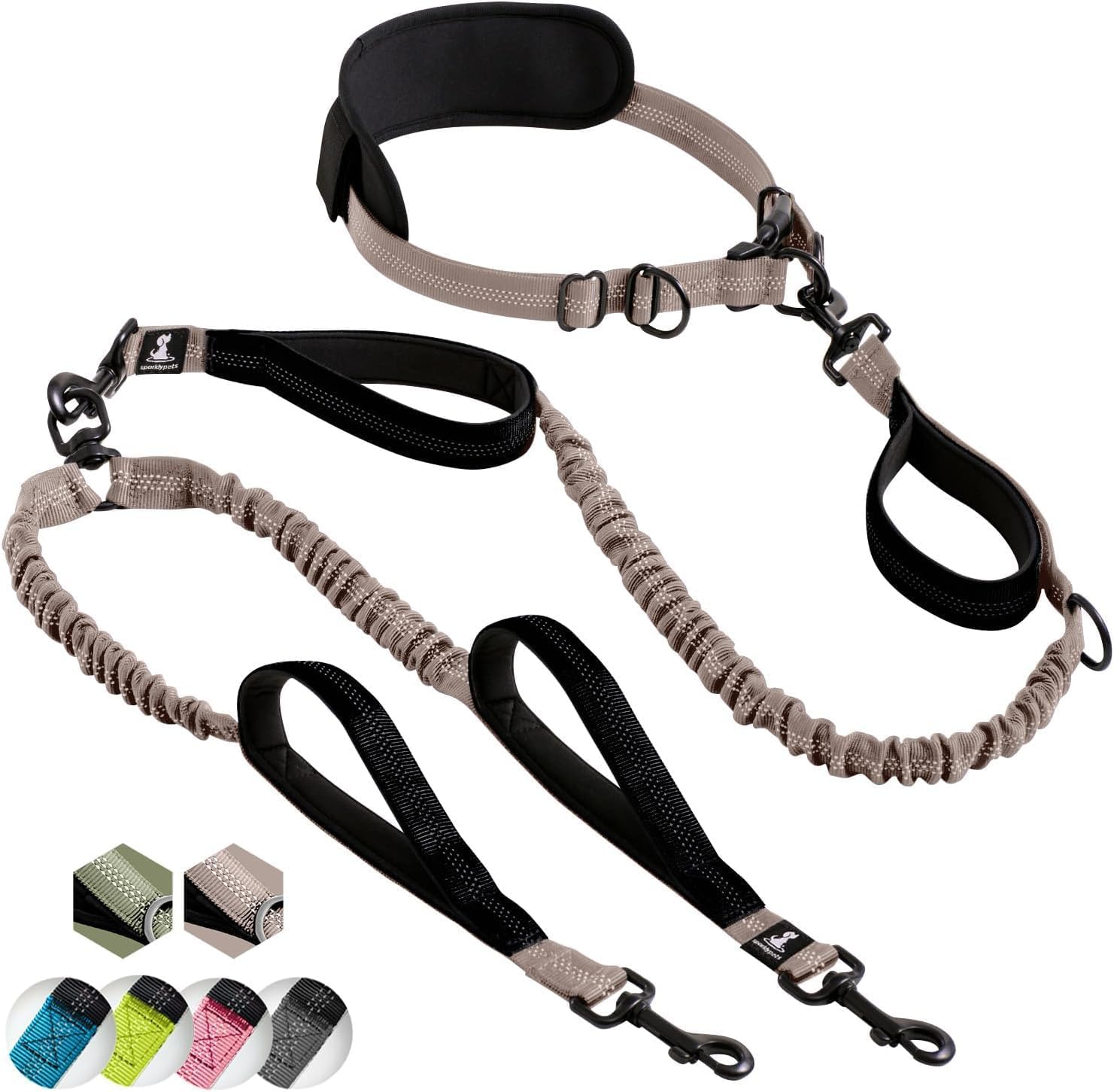 • Absorción de tirones y mayor comodidad: equipada con elásticos fuertes y flexibles, esta correa doble reduce los jalones bruscos, ayudando a prevenir molestias o lesiones en la espalda y cintura, tanto para ti como para tus perros.