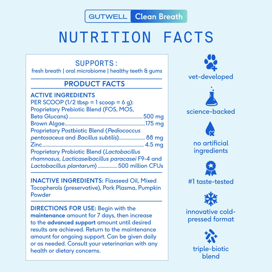 GutWell Clean Breath – Refresca el Aliento y Apoya la Salud Dental de tu Perro