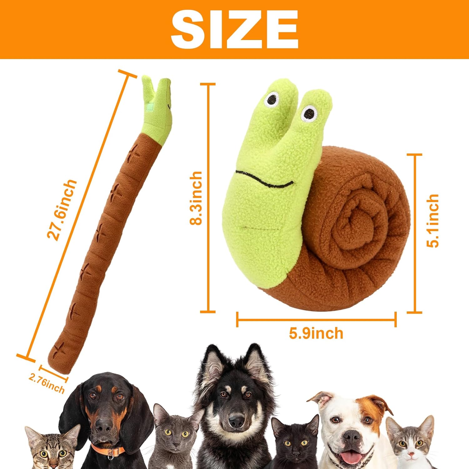 Mantén a tu perro entretenido y estimulado con este juguete interactivo de peluche en forma de caracol, diseñado para despertar sus instintos naturales de juego y exploración.