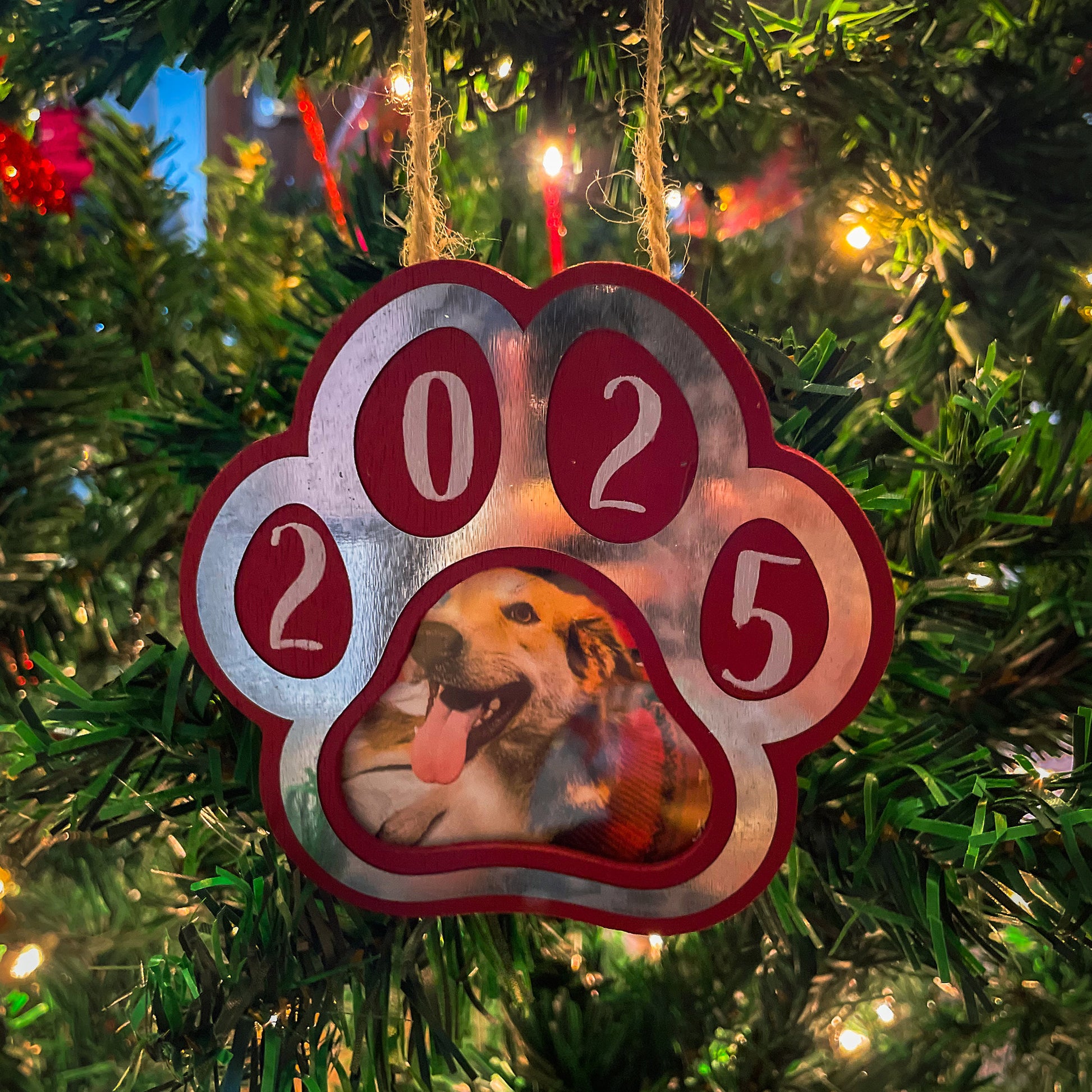 Tierna huellita con espacio para foto y el año 2025. Un adorno navideño perfecto para atesorar momentos junto a tu mascota🐾